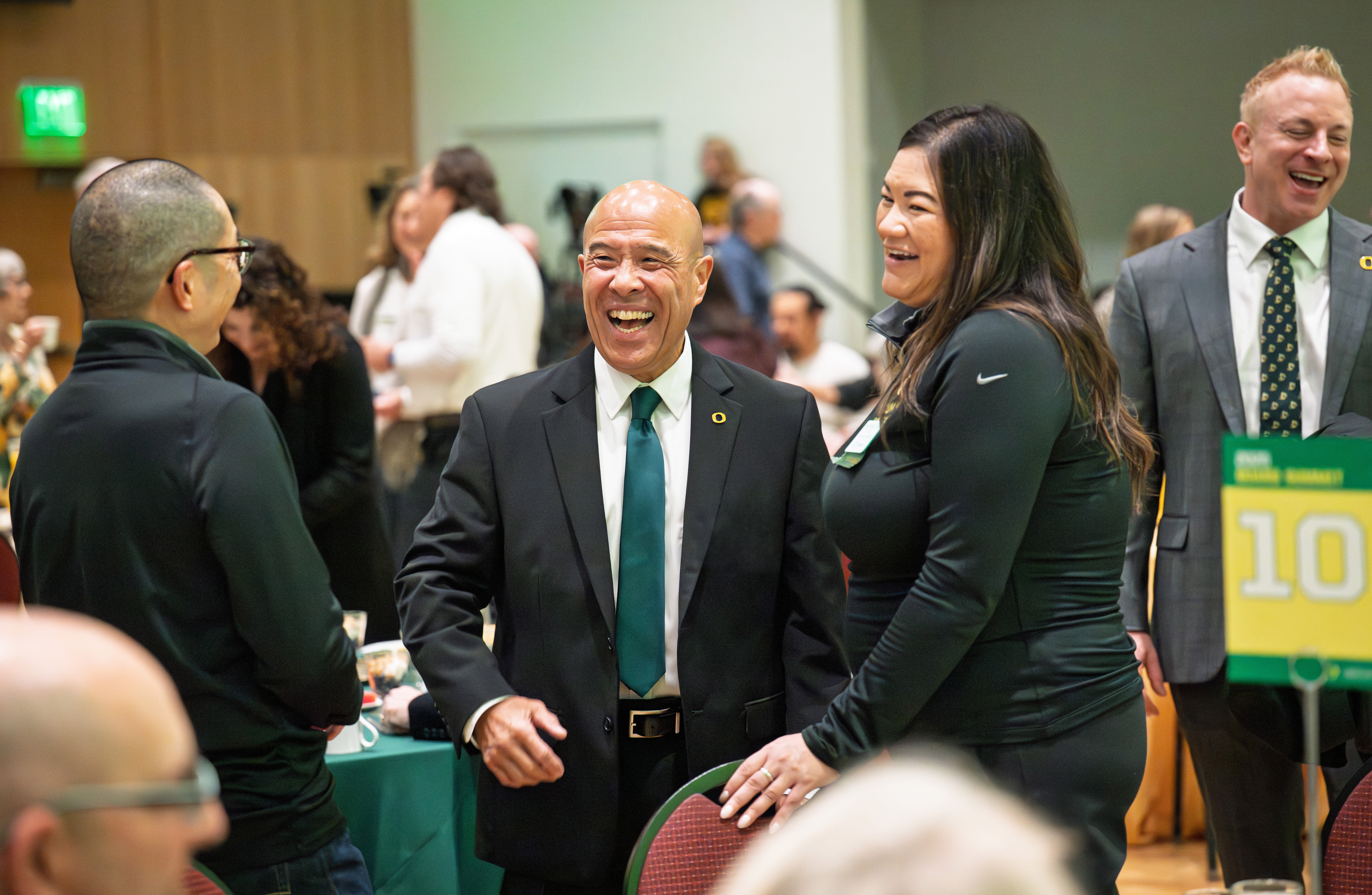 The event included talks from President Karl Scholz, Provost Christopher Long, and Vice President of Advancement Joe Buck, as well as a breakfast with Vice President of Student Life Angela Chong and informational interviews where participants could share their experiences. Volunteers also received information on opportunities like DuckFluencer and the UO Advocates program. And when the summit concluded, you can bet that many headed over the river and through the woods to Autzen—cheering on the Ducks in a decisive 42–13 victory over the Gophers.
