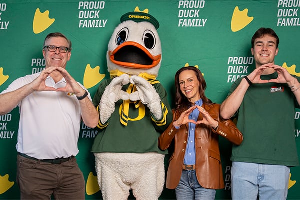 "Watching our son explore the many academic opportunities at UO, as well as receive encouragement and support from the faculty and staff has been reassuring to me as a parent. It is exactly what we had hoped for him when he embarked on his educational journey," said Aaron Shelby, co-chair.