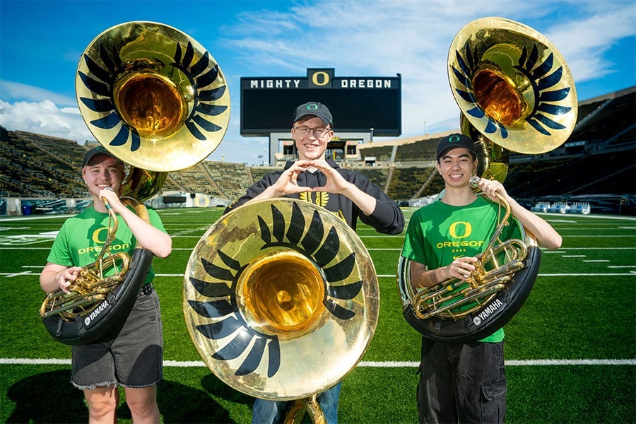Marching band instruments go through a lot of wear and tear. The sousaphones of the Oregon Marching Band (OMB) are no exception. Starting back in July, OMB began fundraising to replace most of these instruments. With an ambitious goal of $120,000 they not only met that goal but exceeded it, with a total amount raised of $125,495 raised from 269 donors through a DuckFunder, which is a crowdfunder through the university that helps to target specific funds or objectives within departments. This allows them to replace the whole sousaphone line at a critical time.